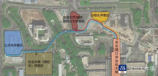 社会车辆/网约车:深圳湾口岸联检大楼北出口→沿出站通道前进150m→深圳湾天桥前进350m→乘坐垂直电梯抵达社会车辆(网约车)停靠区。