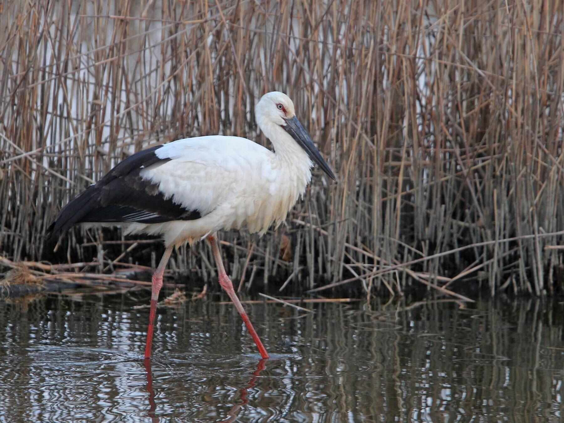 东方白鹳的饮食习惯跟大多数鹳科动物一样,以鱼、青蛙、爬行动物、昆虫、蚯蚓、小型鸟类和小型哺乳动物为食,冬季的时候也会吃一些植物,贝类和小型甲壳类动物。