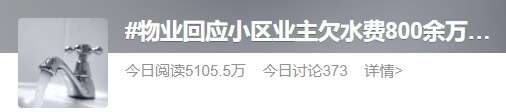 12月11日晚,#物业回应小区业主欠水费800余万元#的话题冲上微博热搜榜,引起网友的关注和热议。