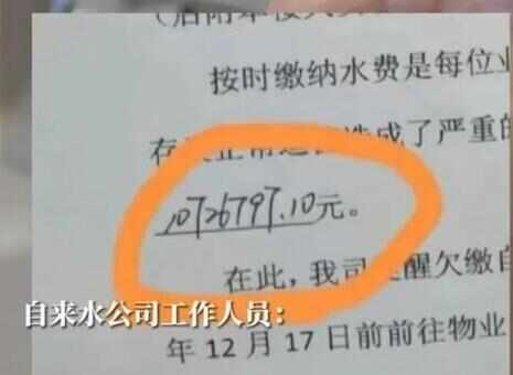 事情是这样的:近日,有网友在社交平台发布图文称,天津福煦广场物业公司12月8日向小区业主发布催缴水费的《通知函》,其中11号楼业主共欠水费高达1000余万元,其中一位业主欠费更是高达810余万元。