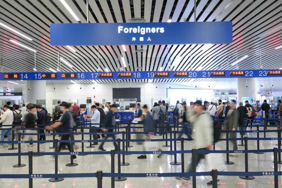 “与上届广交会的客流相比,口岸现场人潮更盛了,同时中亚、东南亚等‘一带一路’共建国家客商的面孔明显增多。”白云出入境边防检查站边防检查处副处长曾令赟介绍,受到近期广交会影响,4月以来(截至4月26日24时),白云边检共查验出入境人员近100万人次,同比增长超八成。其中,来自“一带一路”共建国家的人员有近30万人次,占比约75%;RECP成员国人员约21万人次,占比超50%。