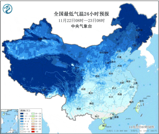 中央气象台11月22日18时发布寒潮蓝色预警: