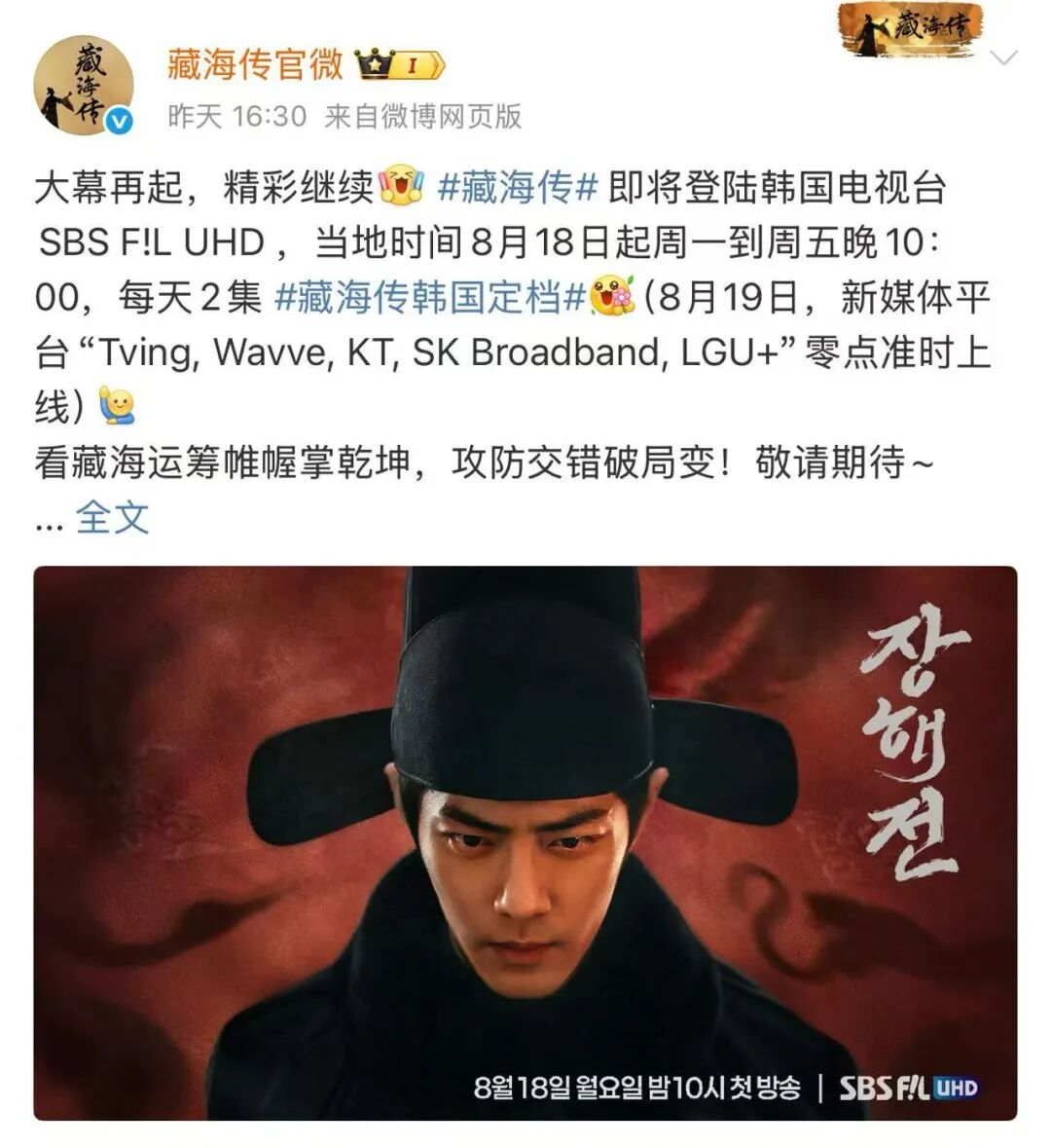 SBS FIL UHD方面表示:《藏海传》在韩国未播先热,播出咨询不断,韩国国内观众关注度极高,敬请期待。