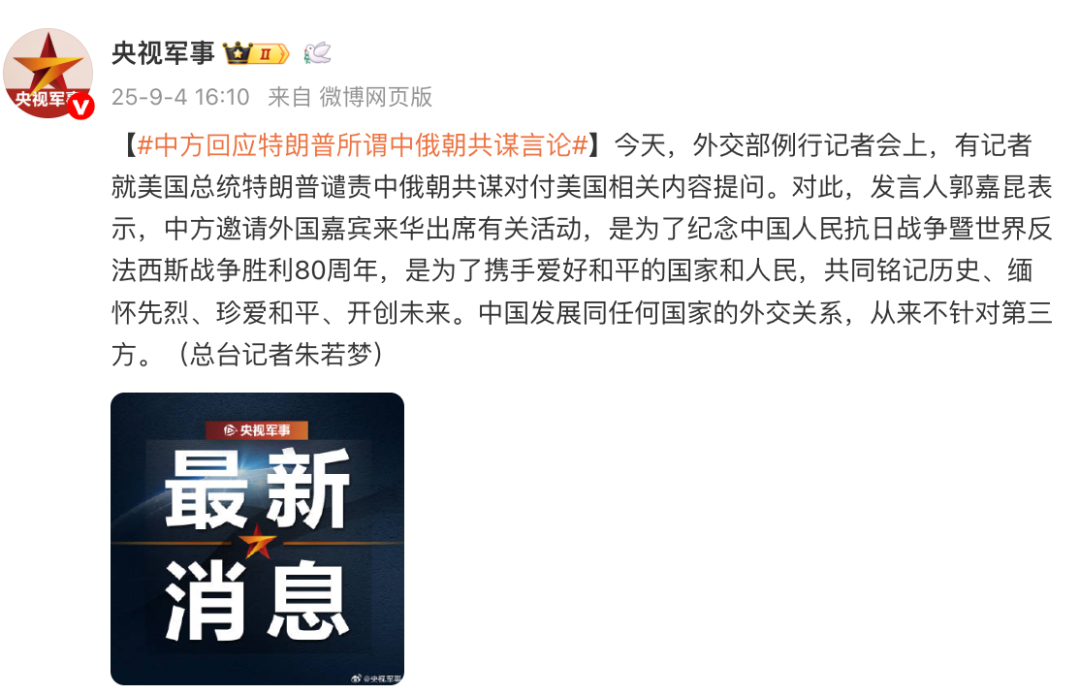“特朗普谴责中俄朝共谋对付美国”,中方回击