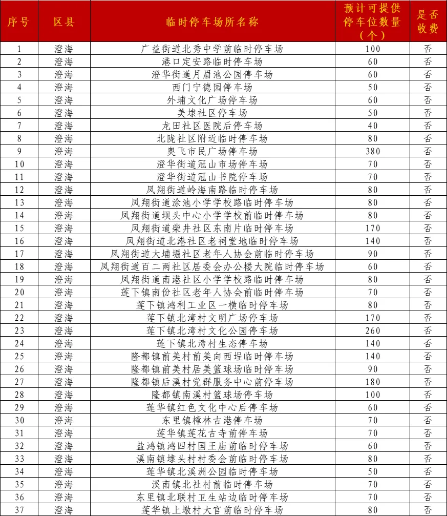 国庆与中秋假期将至,为方便外地来汕游客和广大市民群众休闲出行停放车辆,确保节日期间道路交通安全畅通,近日,汕头因地制宜设置157个临时停车场,共约17009个停车位,大部分免费。