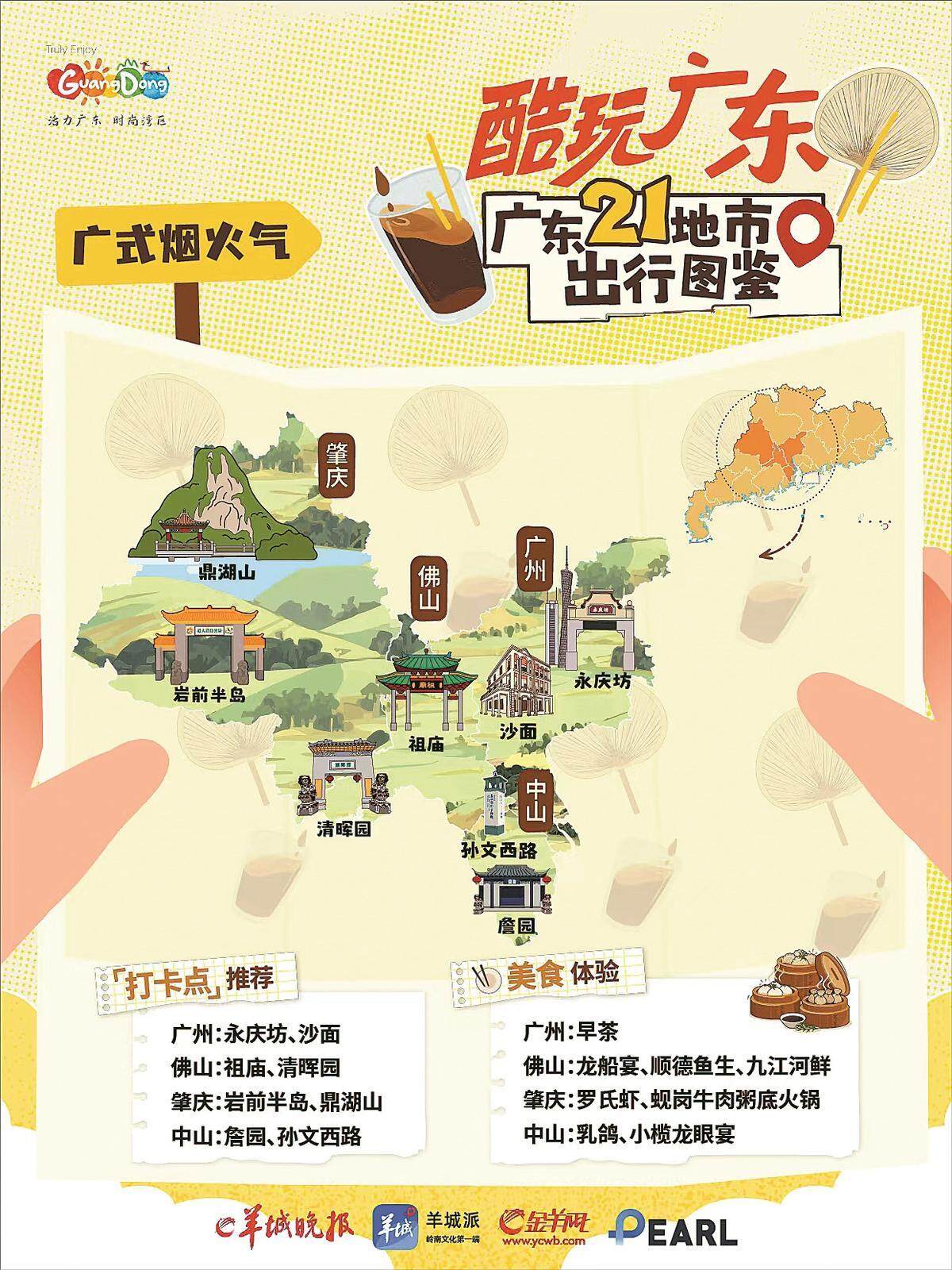 结合广东文化和旅游厅9月发布的几大创新玩法,羊城晚报近日也策划推出了“酷玩广东”系列全媒体报道。跟着“酷玩广东”系列出行图鉴的“打卡点推荐”和“美食体验”,体会“轻松出发,深度体验”的全新旅行理念。