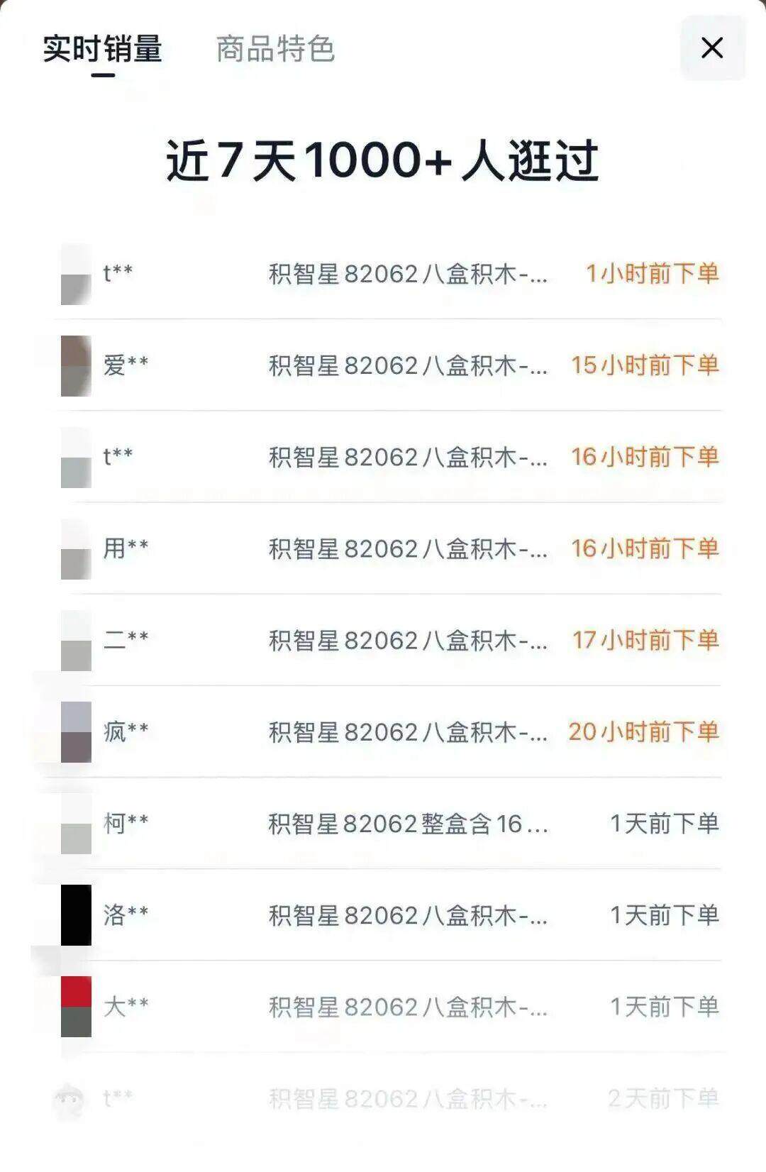 平台显示,该玩具“近7天1000+人逛过”“周销量上涨10+倍”,是“店铺新品销冠”。最新销售记录为“1小时前下单”。