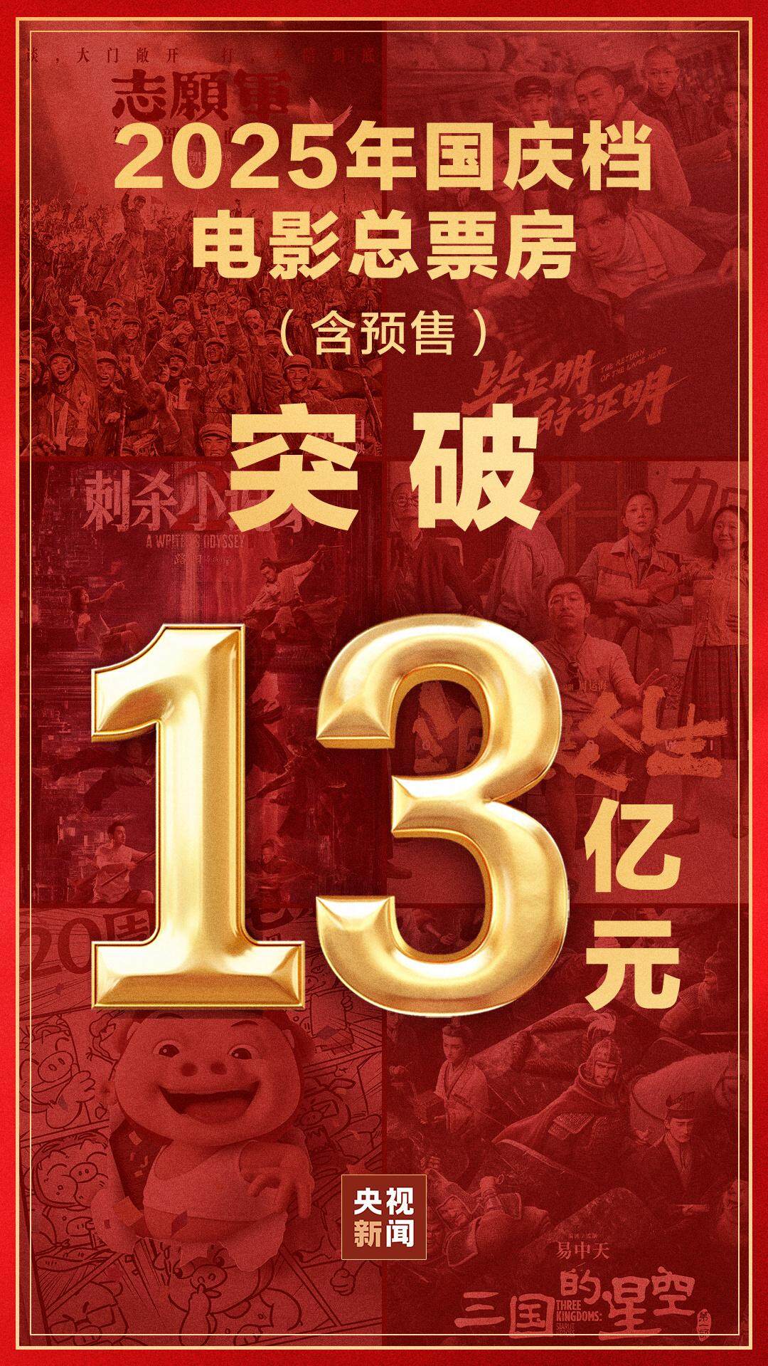 据网络平台数据,截至10月5日17时16分2025年国庆档电影总票房(含预售)破13亿!《志愿军:浴血和平》《731》《刺杀小说家2》列前三位。
