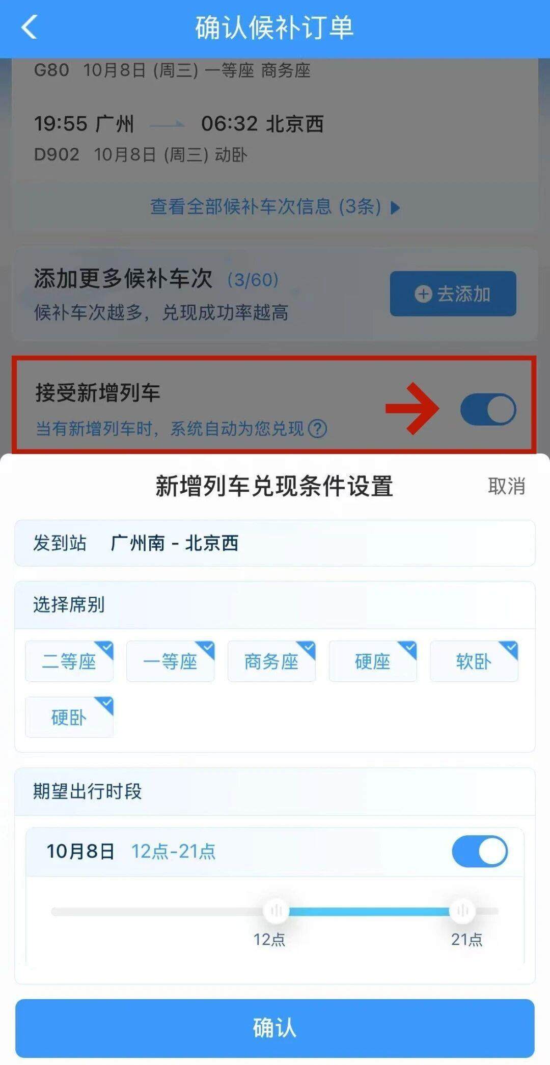 这是一个关键技巧。节假日期间,铁路部门会根据客流情况增开临时旅客列车。在提交候补订单时,务必勾选“接受新增列车”,这些新增加列车的车票会优先供给已提交候补的旅客。