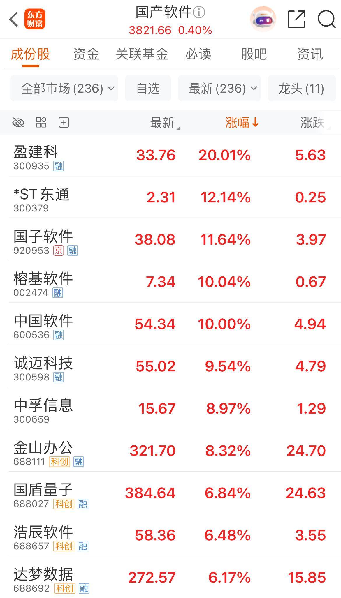 除金山办公外,13日A股国产软件概念股集体表现活跃,工业软件、信创方向领涨。榕基软件、中国软件、盈建科等涨停,诚迈科技、中孚信息、浩辰软件、达梦数据等涨幅居前。