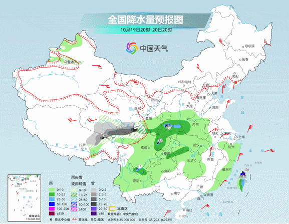 20日在西南地区、西北地区东部到黄淮西部、江淮等地仍有范围不小的降雨,总体来看以小到中雨为主,陕西、四川局地有大雨。