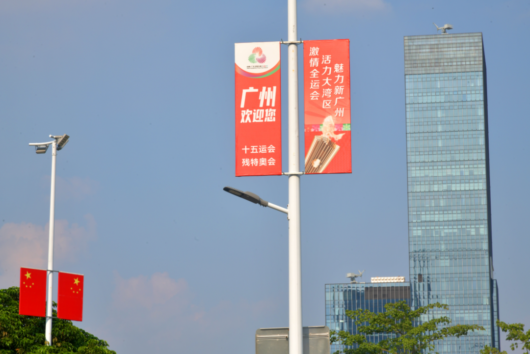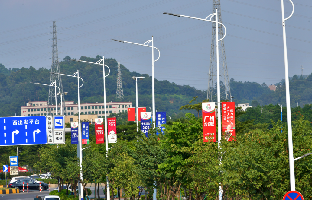 随着十五运会开幕进入冲刺阶段,广州全城换装迎全运,以“点线面”立体布局掀起氛围营造热潮,道旗、横幅、景观小品与全民健身活动交相辉映,让全运气息渗透城市肌理,实现“抬头可见、驻足可观、全面可感”的宣传效果。