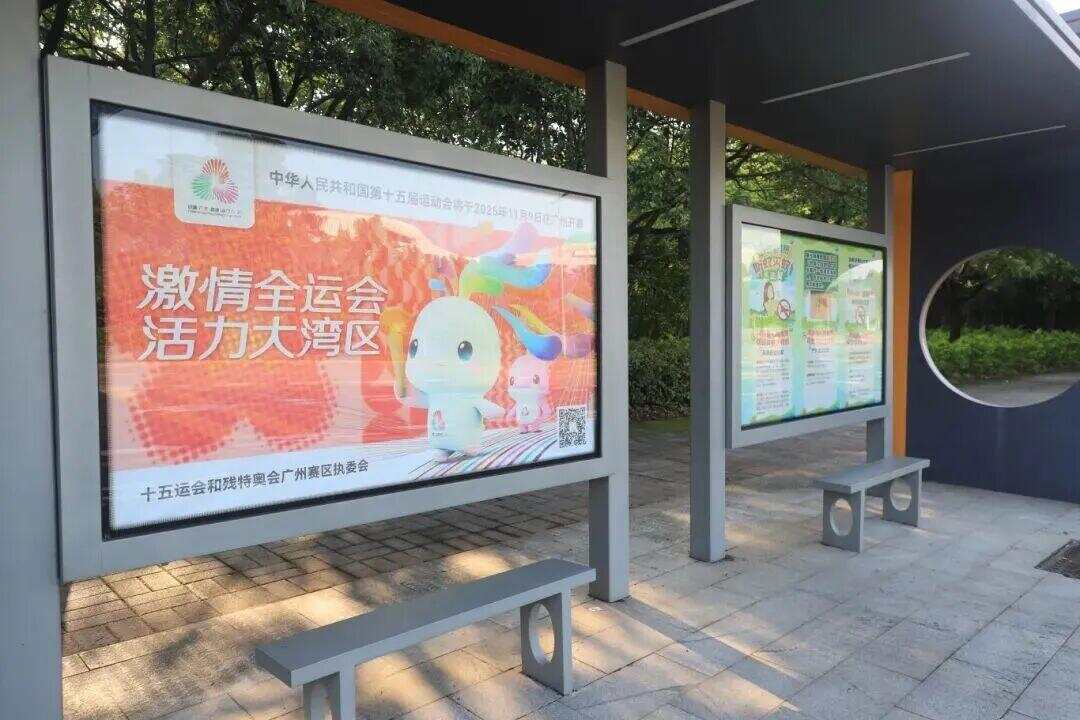 熟悉的公交站台悄悄披上了全运主题“新皮肤”!吉祥物“喜洋洋”“乐融融”挥舞双手,向过往行人传递快乐运动的邀请。