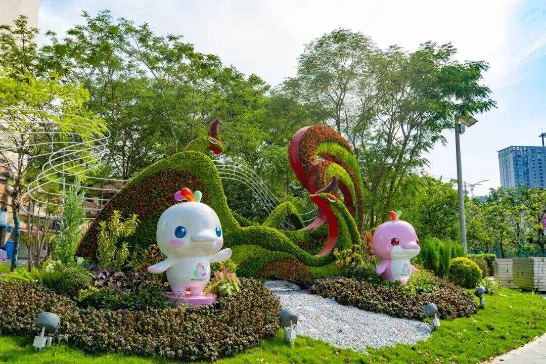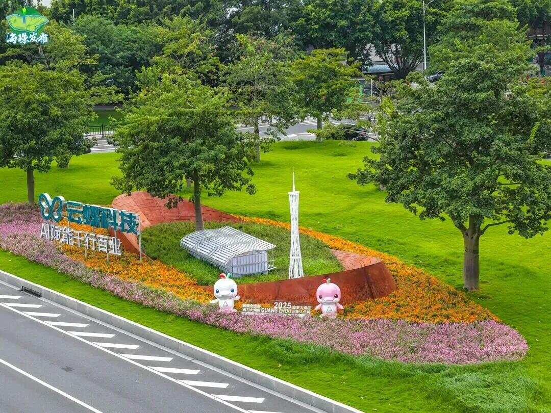 在海珠桥南、海印桥南等城市主要出入口,新滘路、新港路、科韵路等重要道路沿线,布设多彩花带、岭南风情花境等城市绿化景观。