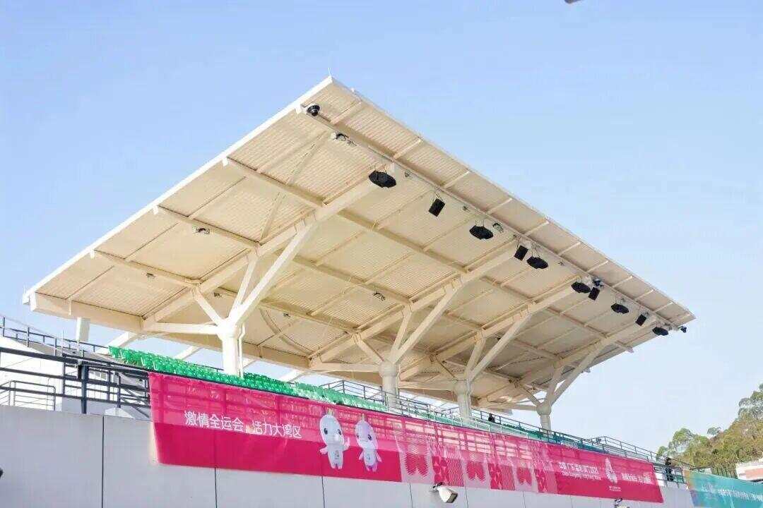 晴空之下,活力的中国红、盎然的生态绿等饱满的色彩,与南沙体育馆白色的建筑肌理碰撞交融。步入南沙体育馆,每一种色彩都渲染着竞技的激情活力。