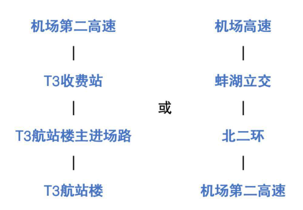 乘车点:T1航站楼出发层12号门、T2航站楼出发层42号门、T3航站楼出发层62号门。