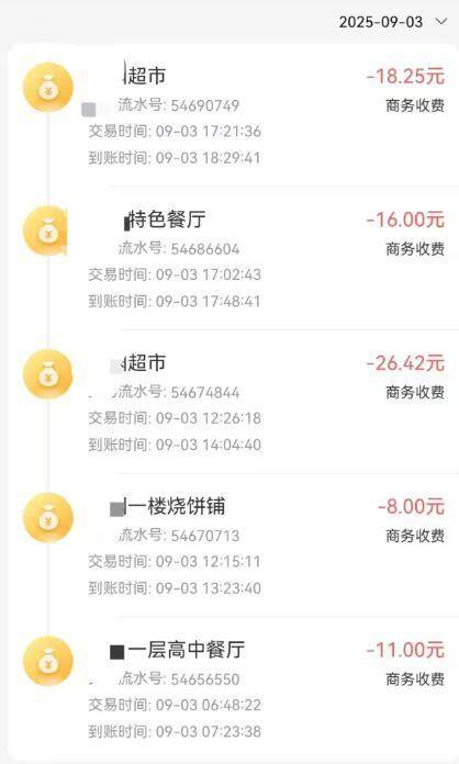 一位家长说:“这个反差主要来自于初中和高中的区别。比如初中中饭15元,晚餐20元,钱都是一学期一次性交给学校的,孩子有啥吃啥。到了高中,孩子脱离家长开始住校了,每一餐吃什么,花多少,决定权都在自己手里。还没赚钱就突然获得了财富自由,那必须要刷个痛快了。”