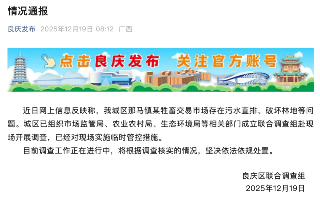 12月19日,广西南宁良庆区联合调查组发布情况通报: