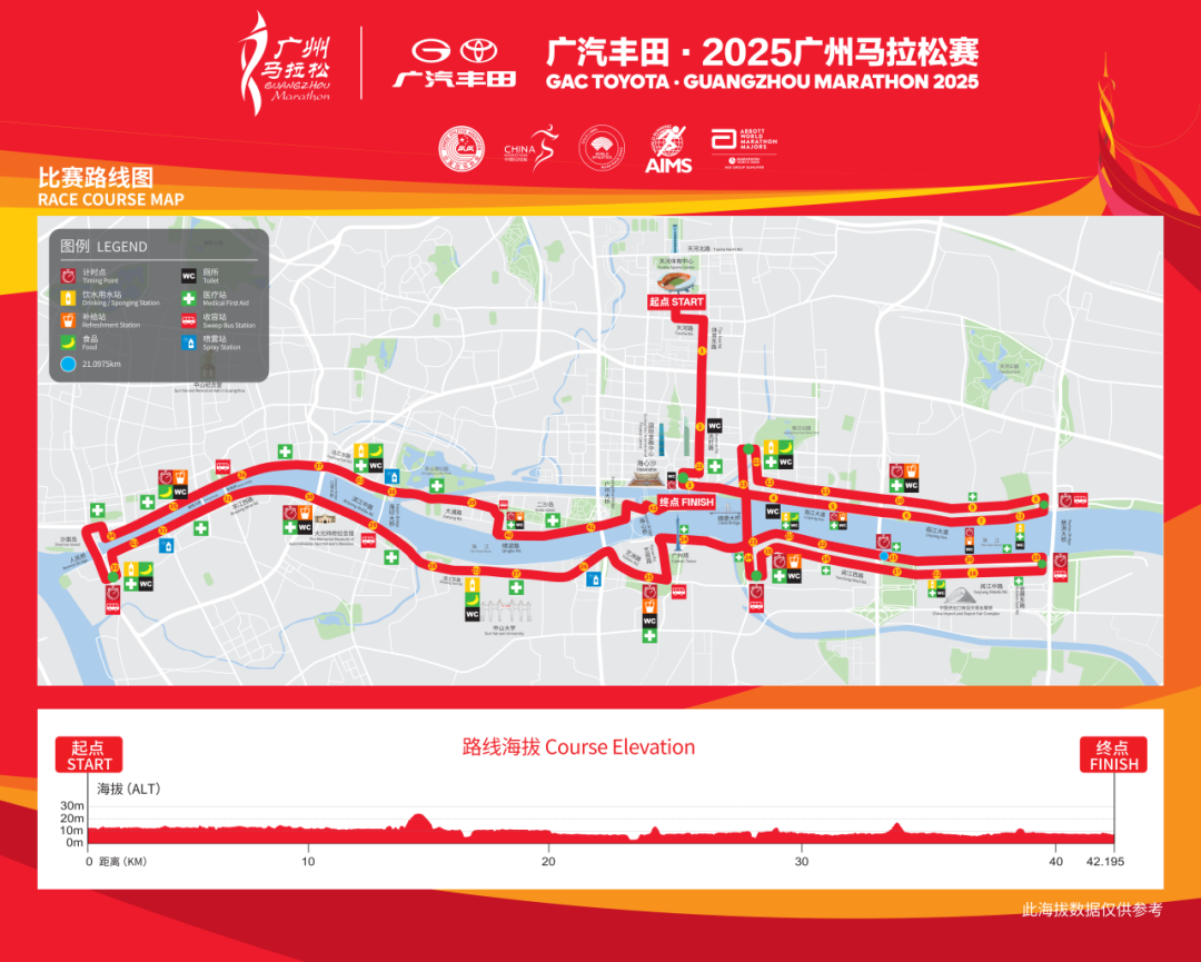 2025广州马拉松赛定于12月21日07:00至13:35举行。马拉松比赛起点设在天河体育中心,终点设在海心沙。