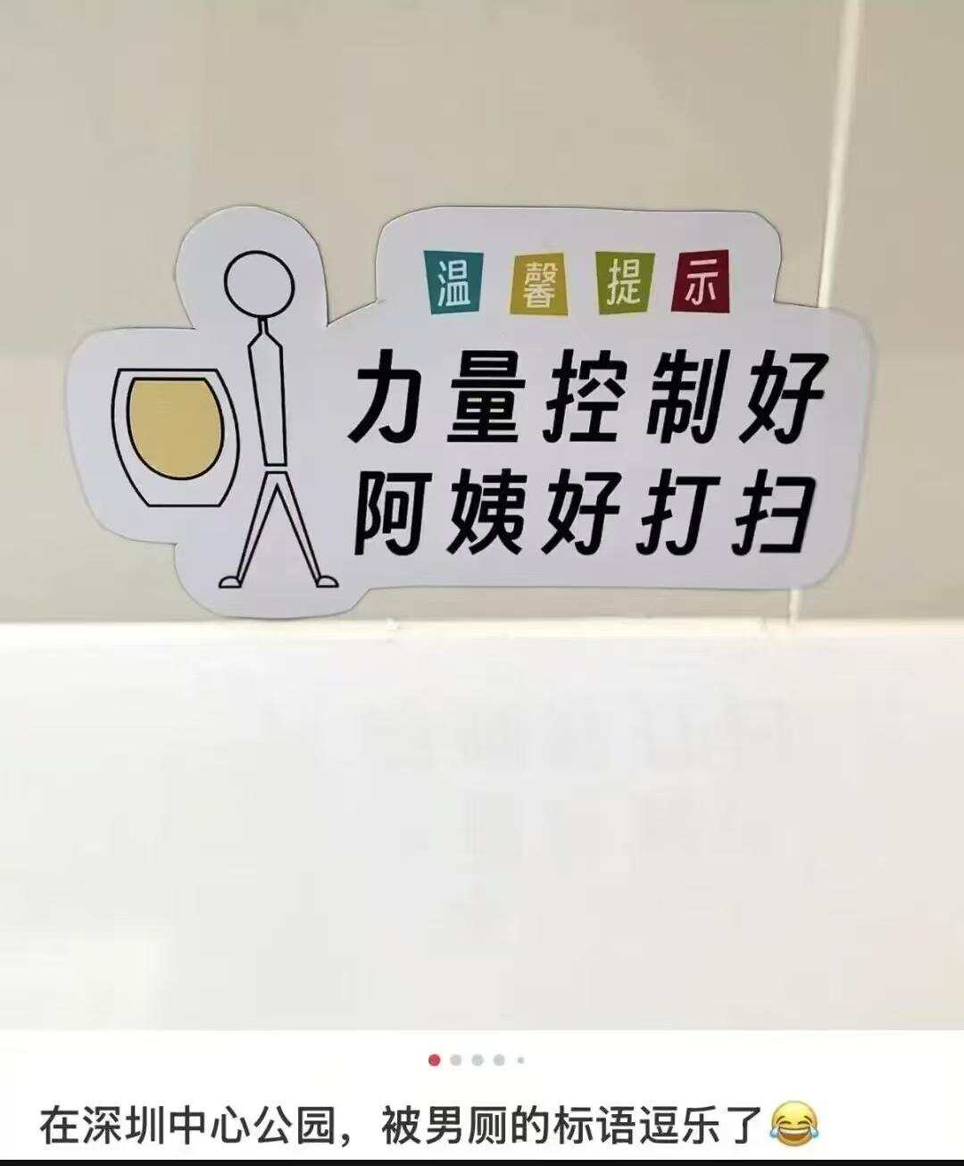 这句意外走红的标语,是福田区一位保洁阿姨的随手创作,没有复杂的策划,却凭着接地气的幽默“戳”中不少人。在深圳,这样的小趣味并不少见:中心公园男厕里“力量控制好,阿姨好打扫”的直白提醒,透着满满的生活气息;深圳交警六年免检自助机更显巧思,身份证识别失败时,会对女性提示“您更美了”、对男性提示“您更帅了”,把暖心细节融进了公共服务里。这些跳出框架的表达,打破了大家对公共标语的刻板印象,让文明倡导的话语在笑声里就被听了进去。网友感慨:“没想到搞钱节奏飞快的深圳,还藏着这么多温柔的小幽默”,这种不端架子的沟通方式,正是城市和市民平等对话的最好体现。