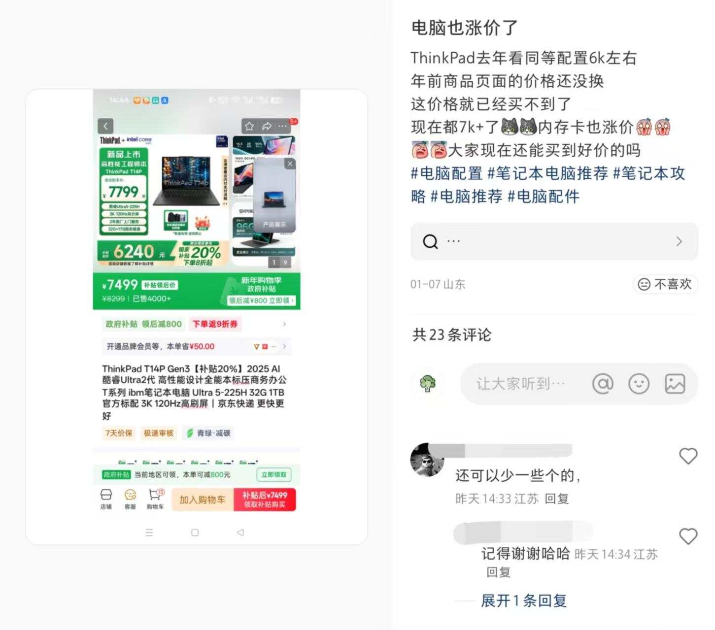 白领王先生也表示,即使使用“国补”优惠,到手价也没有前阵子便宜。他告诉记者:“这几天一直在做攻略,结果发现价格已经上去了。”线下门店同样感受到了这股涨价风。广州天河区数码城一家数码门店销售员闫先生透露,他所在的品牌已对多款笔记本电脑调价。