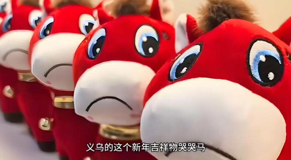一只是来自义乌工厂的毛绒马年玩偶,因为生产线上的一个疏忽,它的嘴巴被缝反了,本该是“笑笑马”却变成了一张委屈的“哭哭马”。这个原本的次品不仅没有被嫌弃,反而在全网催单中逆袭成爆款,工厂不得不增开十多条生产线才能满足汹涌的订单。