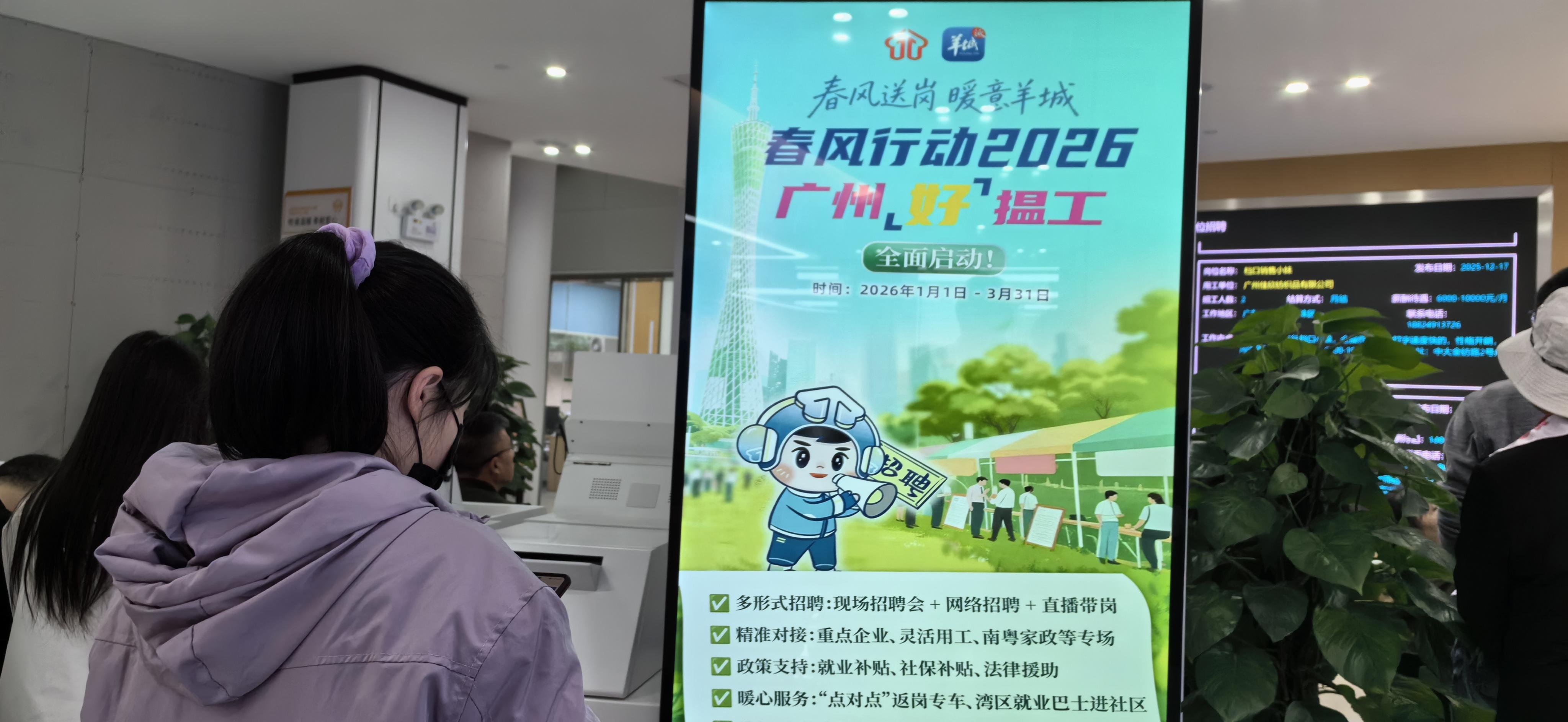“在家门口就找到合心意的工作,还摸清了补贴政策,这个冬天太暖心!”1月14日,刚装修一新的广州市人力资源市场服务中心内暖意融融,刚和安保企业谈妥意向的林潘利看着手机微信上的面试通知,笑容藏不住。这是广东岁末年初聚焦脱贫人口、长期登记失业人员等群体,全力助大家“节前找好工、开心过大年”的生动一幕。