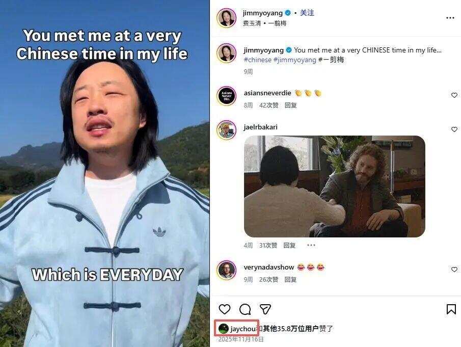 后来,连华裔喜剧演员欧阳万成也参与进来,唱了一首《一剪梅》,周杰伦还给这条视频点了赞。