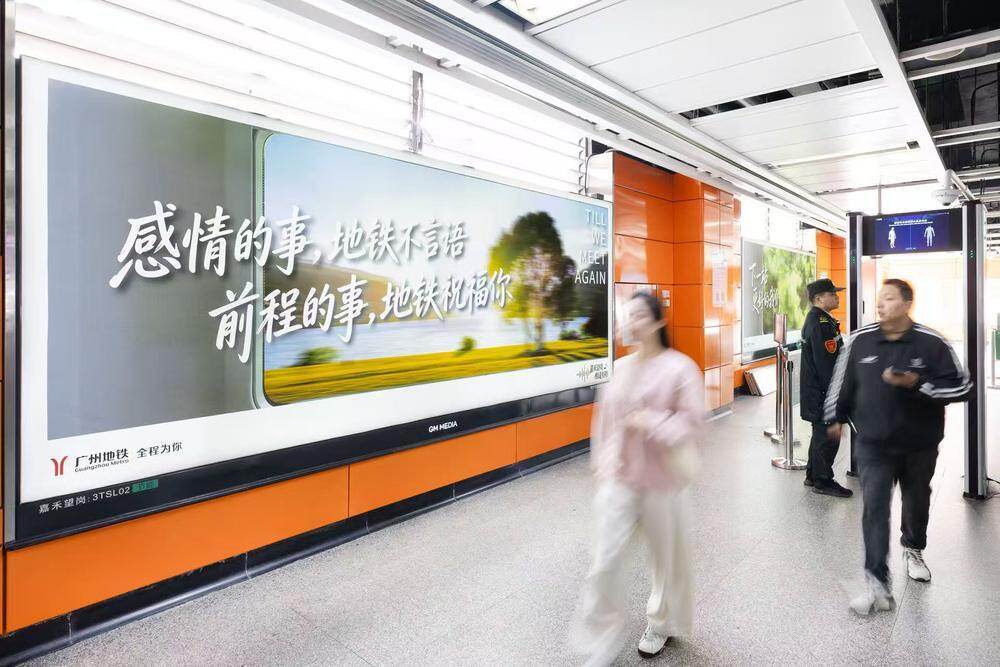 歌曲出圈,广州地铁的“整活”迅速到位。近日,嘉禾望岗站内悄然出现了系列温情广告牌:“感情的事,地铁不言语,前程的事,地铁祝福你”“这里是嘉禾望岗,愿你此去繁花似锦,亦有重逢可期”“嘉禾望岗,相逢可期”“下一站,更好的我们”……有情感温度的广告语,为来往乘客送上旅途的温暖,成为打卡热点。