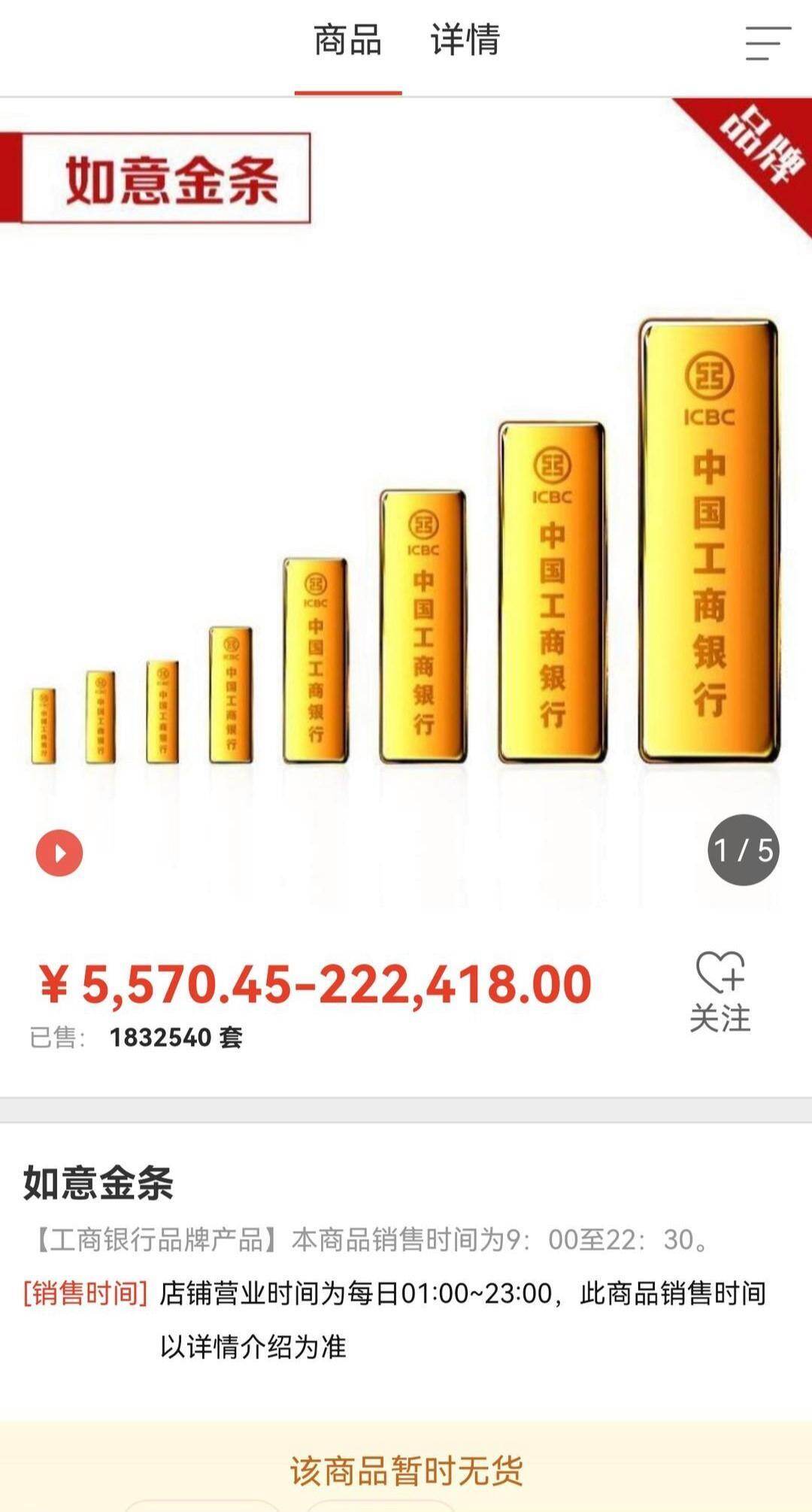 记者查询多家银行APP,发现部分银行的实物金条均显示“无货”。比如工商银行如意金条累计销量达183.25万套,全线处于售罄状态,多款十二生肖传世金系列产品亦无货可售,其中“奔腾马”款式销量已达9194套。有网友反馈,在招商银行申购10克黄金并申请实物兑付时未成功,客服告知因货源短缺无法兑付;后续尝试在农业银行购置金条,同样面临无货状态。