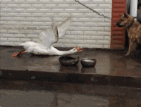 2、扭:只是会啄的鹅和笨鸡有什么区别?大鹅不仅要咬你,咬住了之后还要扭动头部,来一场轻量级死亡翻滚......