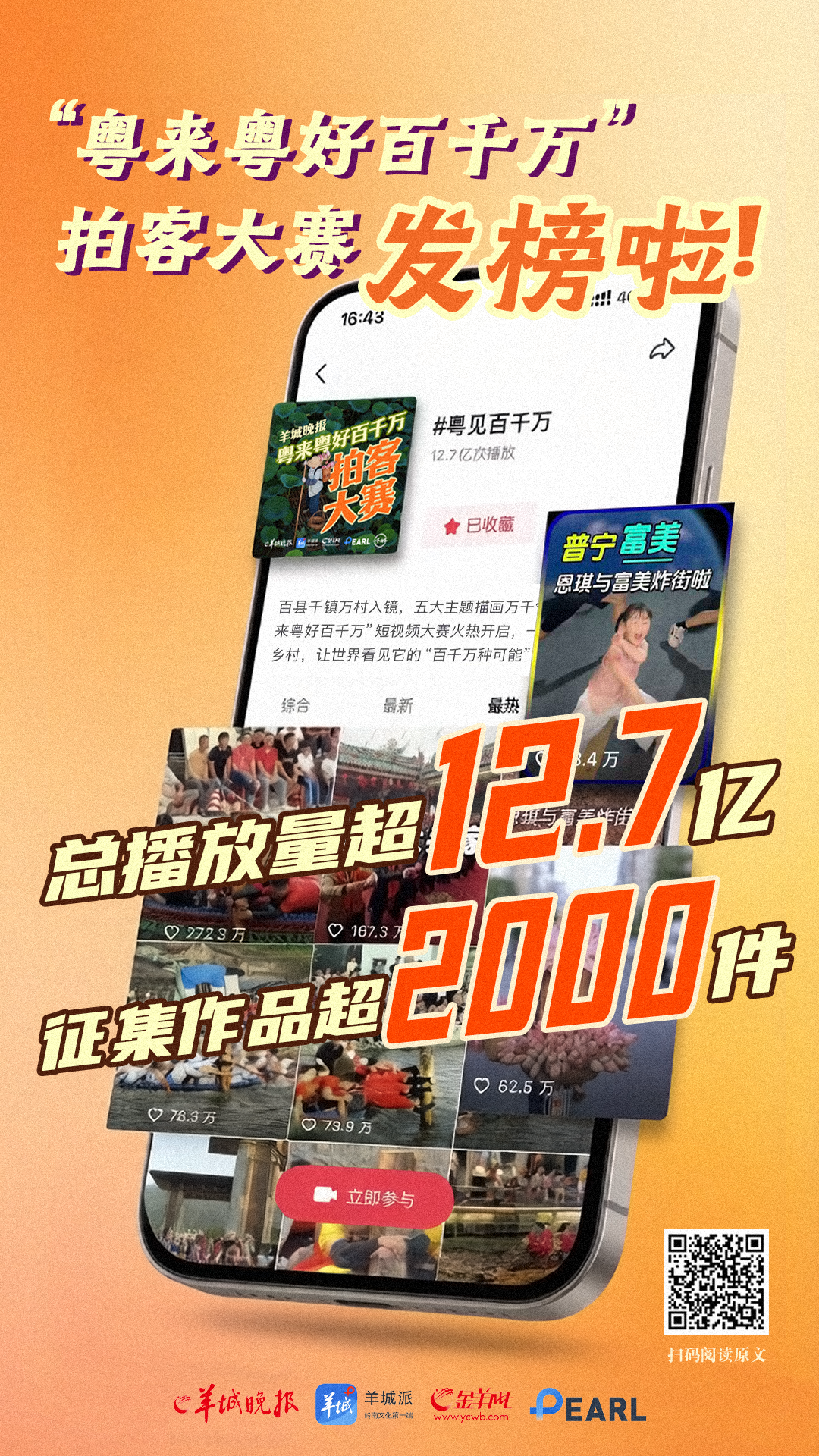 2025年是广东省“百千万工程”实现“三年初见成效”目标的关键之年。为全景式记录这场关乎南粤大地的深刻变革,羊城晚报自去年5月30日发起“粤来粤好百千万”拍客大赛,掀起了一场乡村振兴短视频创作热潮。