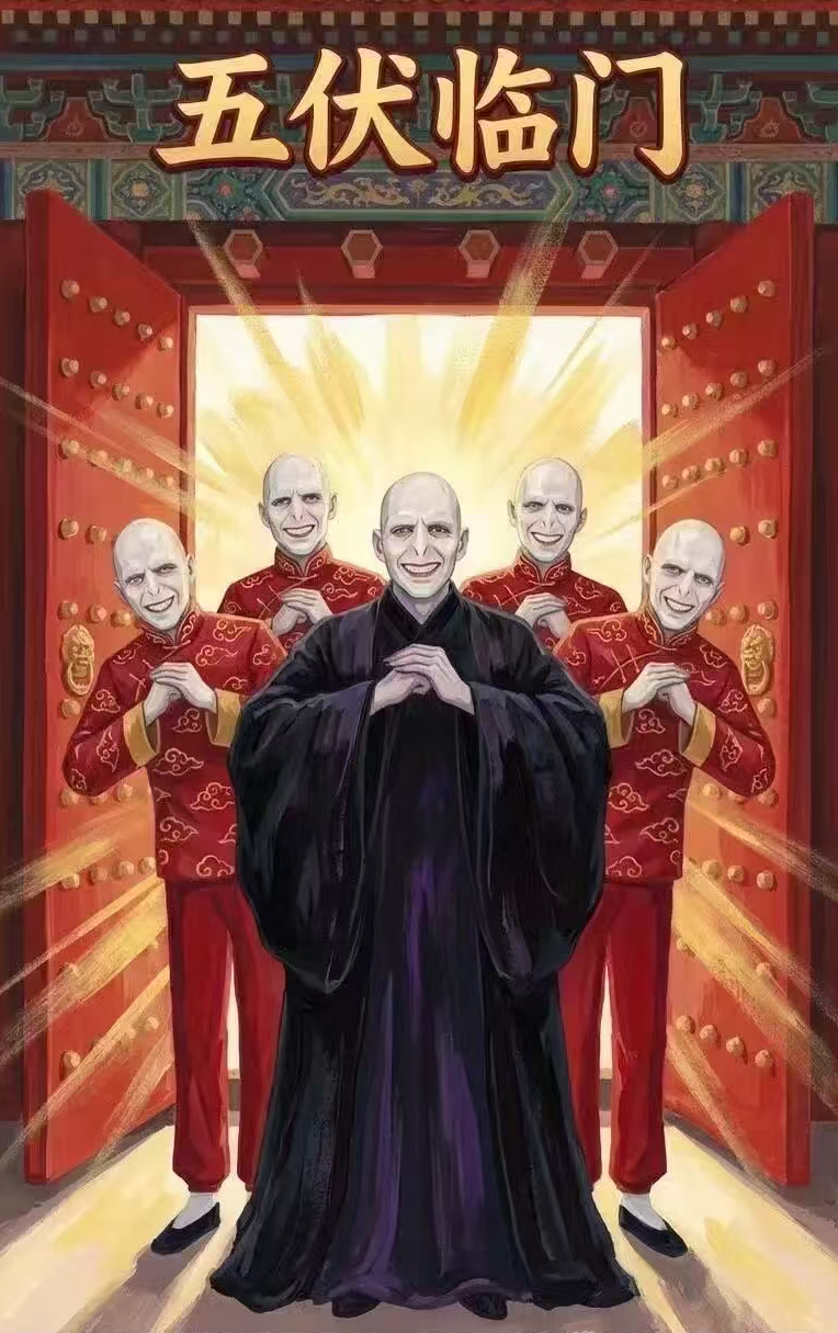 随着马尔福在中国春节文化中的成功“转型”,一些网友已经开始将目光投向《哈利·波特》系列中的其他角色,特别是最大反派伏地魔。甚至有人玩起了“五伏临门”的梗——将伏地魔的“伏”与福气的“福”相联系,创造出“新的一年需要这种闯进门的霸道福气”的幽默解读。