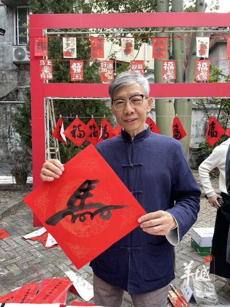 “马上有钱有福”“有屋有福”“奔马2026”…… 活动现场,荔湾区书法家协会的文艺工作者挥毫泼墨,“花式”书写祝福、春联和吉祥寄语,免费赠予到场的街坊。