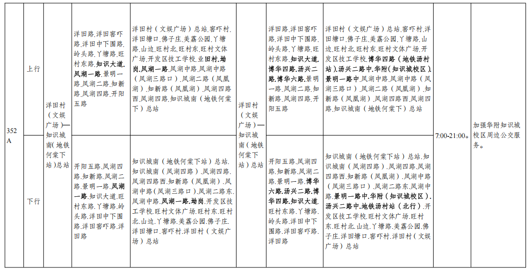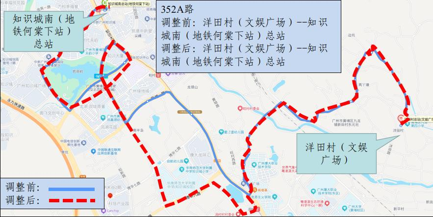 公共汽车352A路调整示意图
