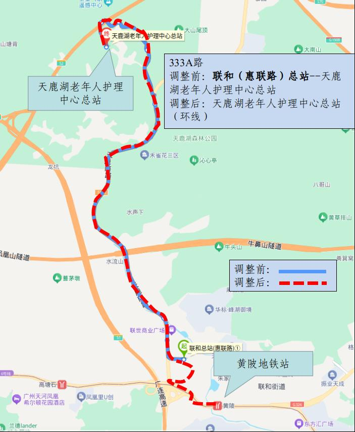 公共汽车333A路调整示意图