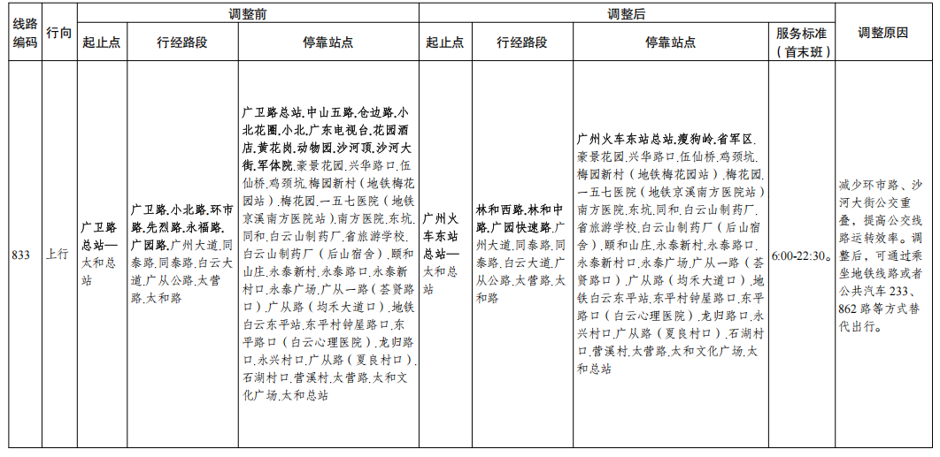 公共汽车调整设置情况表