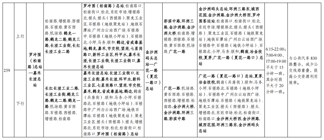 公共汽车259路调整示意图