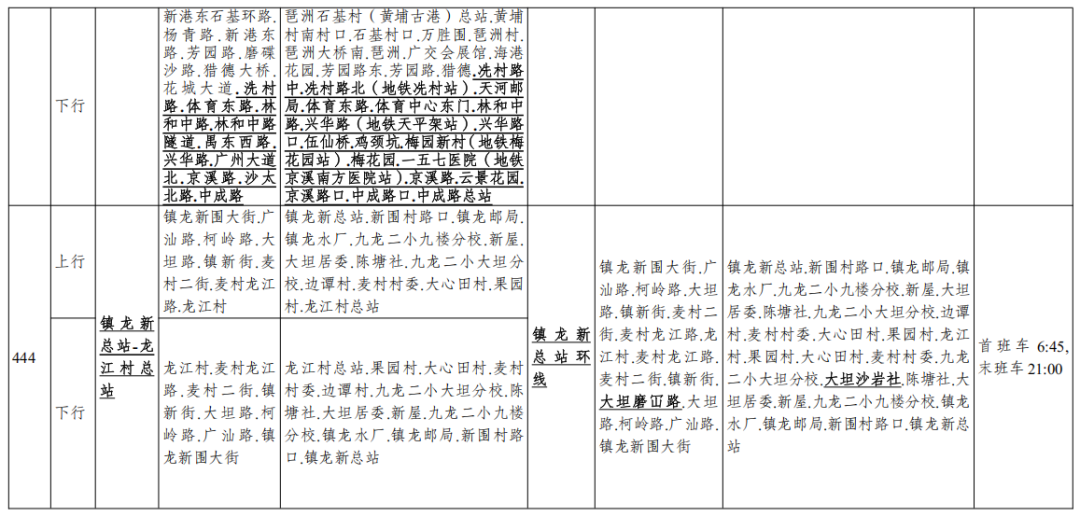 二、公共汽车444路由镇龙新总站至龙江村总站调整为镇龙新总站环线,增设并停靠大坦沙岩社站。