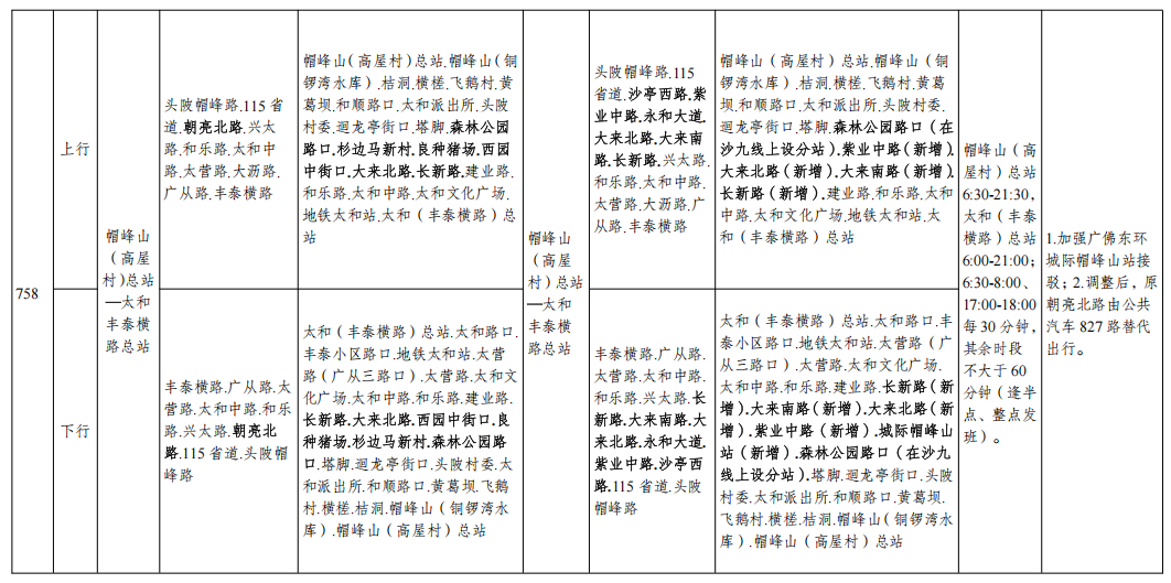 公共汽车758路调整示意图