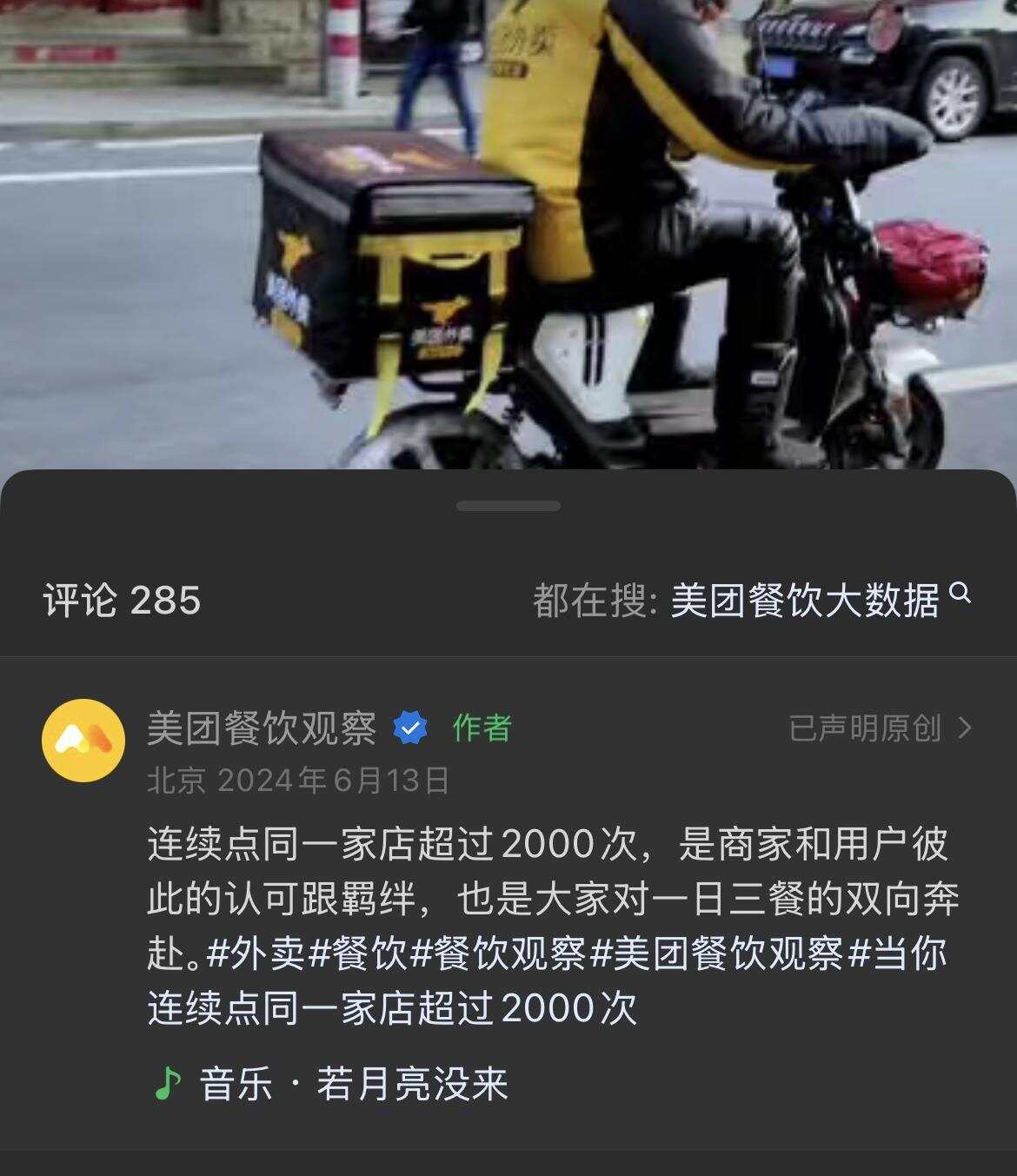 陈宇鸣记得,当时外卖平台就发布过相关信息。记者对此进行核实,微信视频号“美团餐饮观察”确曾推出视频《连续吃一家店超过2000次是什么体验?》,时间为2024年6月13日。