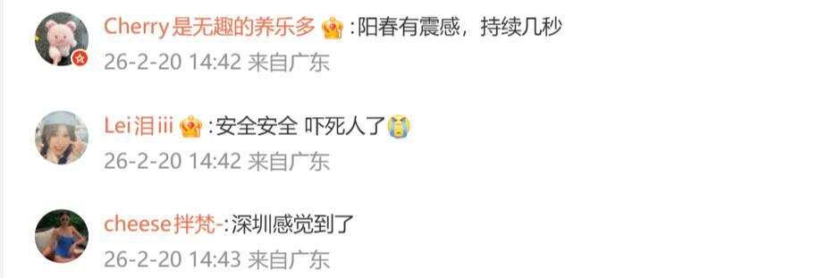 记者从社交媒体看到,阳江、深圳、东莞、广州等地的网友,均反映感觉到地震发生。从网友反映的情况看,有网友反映自己所在的建筑物有轻微摇晃的现场,也有网友反映在家中感受到震动时“从沙发上坐起来”。从网友反映的情况看,暂未出现有明显的因地震而损毁的情况发生。