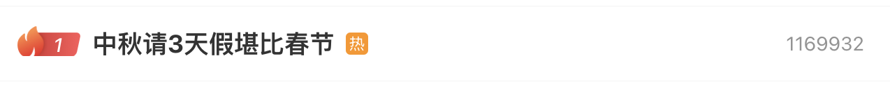 2月25日,话题“中秋请3天假堪比春节”冲上微博热搜榜第一。