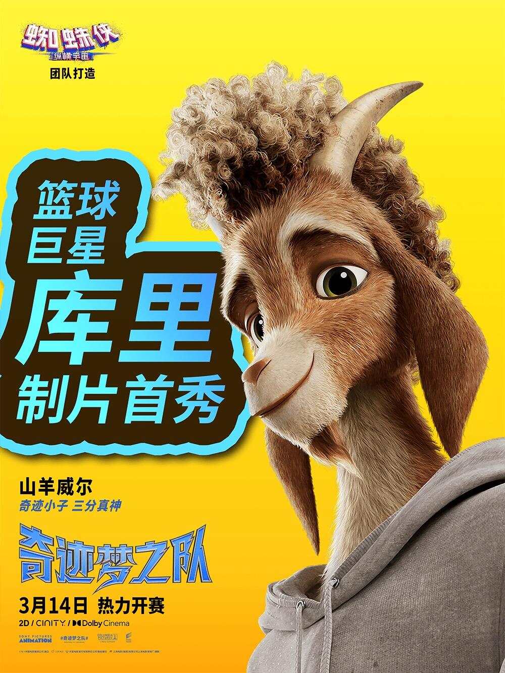 据悉,《奇迹梦之队》由美国哥伦比亚影片公司额索尼动画联合出品,史蒂芬·库里首次担纲制片人。影片由奥斯卡最佳动画《蜘蛛侠:平行宇宙》团队打造,将于3月14日库里生日当天在中国内地上映,该片此前已于2月13日在北美上映,全球票房已突破1.08亿美元,知名评分网站CinemaScore给出A级评级,烂番茄爆米花指数高达94%,收获市场广泛认可。