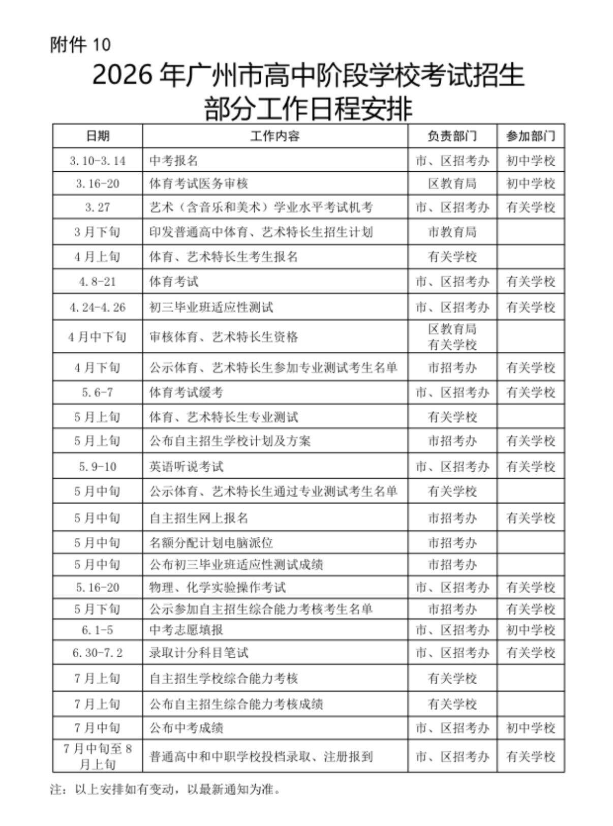 2026年广州中考日程,哪些时间点需要特别关注?