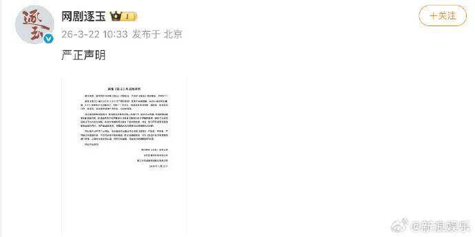 3月22日,《逐玉》官方微博发布严正声明,呼吁抵制盗版内容,将严查盗版来源,保留追究刑事责任和赔偿损失的权利。