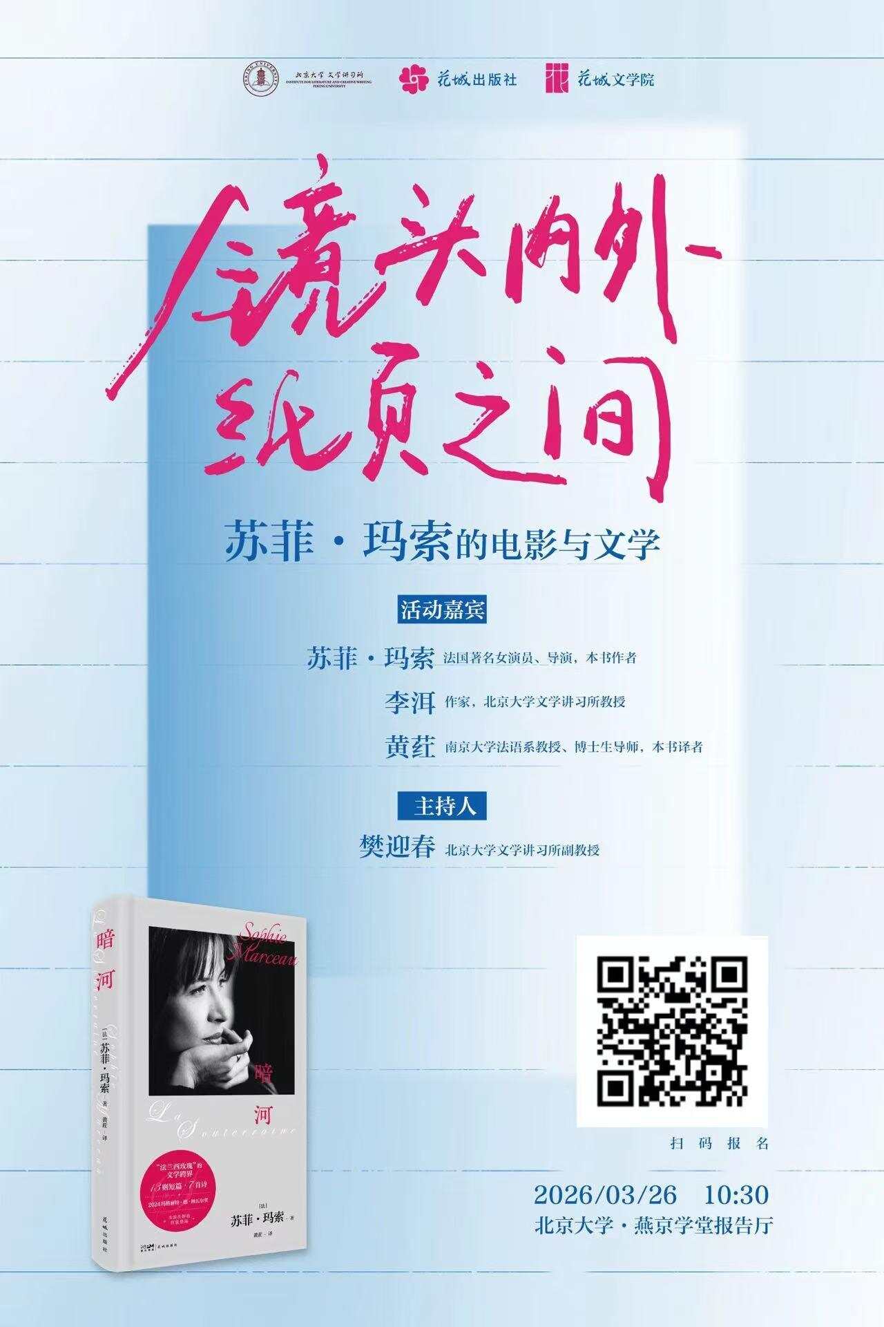 2026年3月,苏菲·玛索中国行系列活动将落地北京,携新作《暗河》走进北京大学、中国现代文学馆等地。