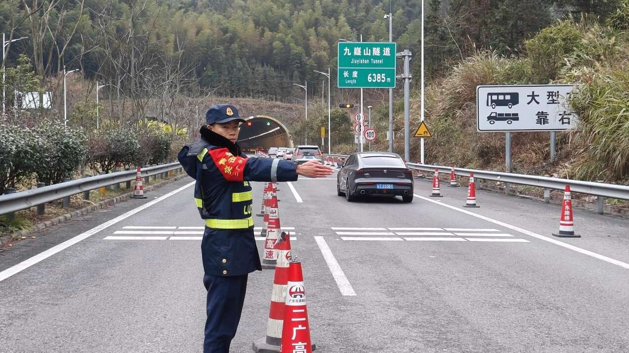 1月22日早,清远连州二广高速九嶷山路段路面温度零下1.3℃,现场下小雨和冰粒,部分路面出现结冰现象。