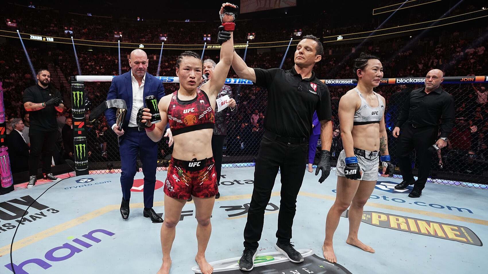 张伟丽和闫晓楠在女子草量级决赛相遇,最终,现任女子草量级冠军张伟丽展现超强地面压制实力,击败同胞闫晓楠成功捍卫金腰带。