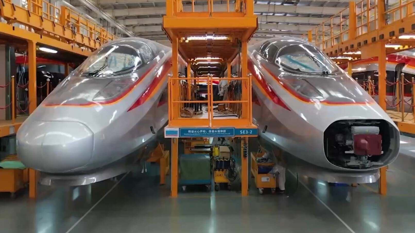 目前,CR450动车组样车正在加紧研制,样车何时下线?列车提速需要哪些新技术?未来怎样带动相关产业发展?一起走进CR450动车组样车研制一线